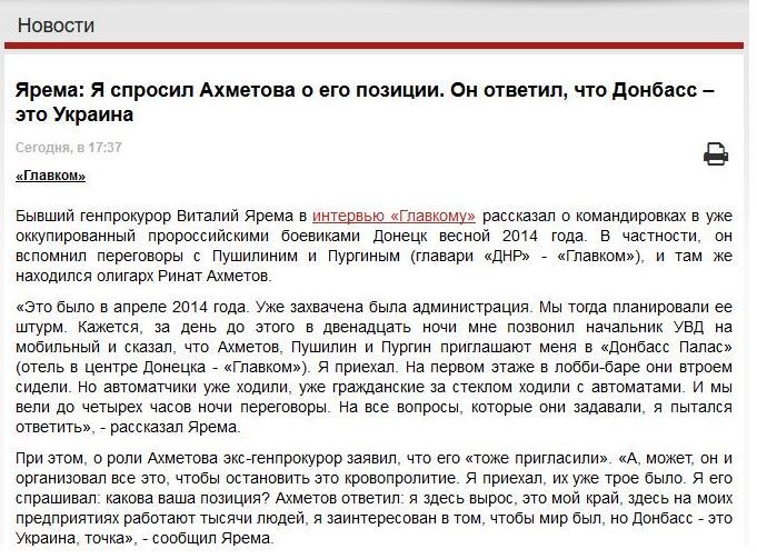 Как ранее сообщал Диалог.UA, бывший генеральный прокурор Украины Виталий Ярема обнародовал данные о своем разговоре с олигархом Ринатом Ахметовым весной 2014 года в оккупрованном Донецке.