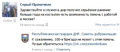“Я служил в ДНР. Получил серьезное ранение. Больше года на костылях. Есть возможность помочь с работой в Москве?”, - такими запросами сейчас пестрят паблики боевиков “ЛДНР”.