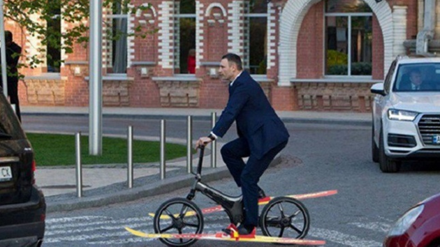 Ранее сообщалось, что в казус с падением Кличко попал по своей вине.Он решил запрыгнуть на бордюр, но вместо этого перелетел через руль и приземлился на асфальт.