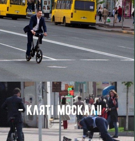 Добавим также, что в Сети уже появились фотожабы на падение Кличко с велосипеда.
