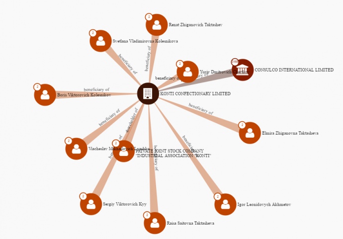 Так, в офшор была выведена компания "Конти", бенефициаром которой является брат Рината Ахметва - Игорь и экс-депутат Борис Колесников.