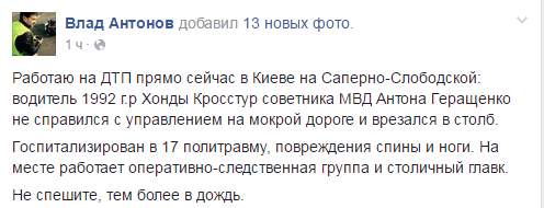 В момент ДТП Антона Геращенко в салоне не было.