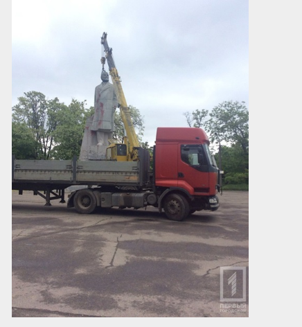 На месте демонтажа работают до сих пор два крана и грузовик, они собирают остатки от памятника после того, как была убрана его основная скульптура.