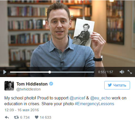 В свою очередь Том Хиддлстон проявил инициативу, продемонстрировав свою детскую фотографию. Актера крайне беспокоит военная ситуация на востоке Украине.