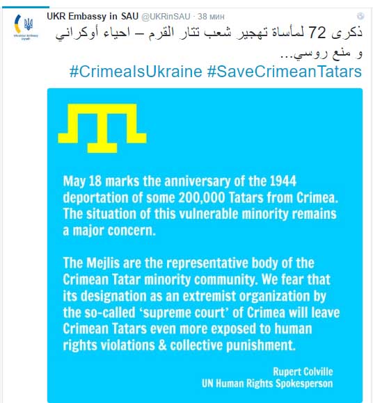 Посольство Украины в Саудовской Аравии напомнило о трагедии депортации крымских татар