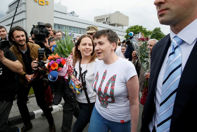 "С колен нужно вставать. Я понимаю, что не та страна, где встать с колен легко. Но если они хотят жить в согласии также, как и мы, то им надо вставать с колен, а нам нельзя им дать возможности прийти сюда. Украина превыше всего!" - подчеркнула освобожденная летчица.