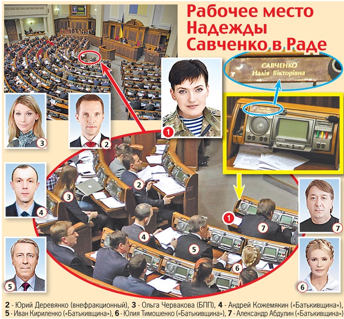 Коллеги Савченко по партии признались, что у нее самое козырное место в Раде, оно находится возле парламентской трибуны и почти не доступно для объективов СМИ.