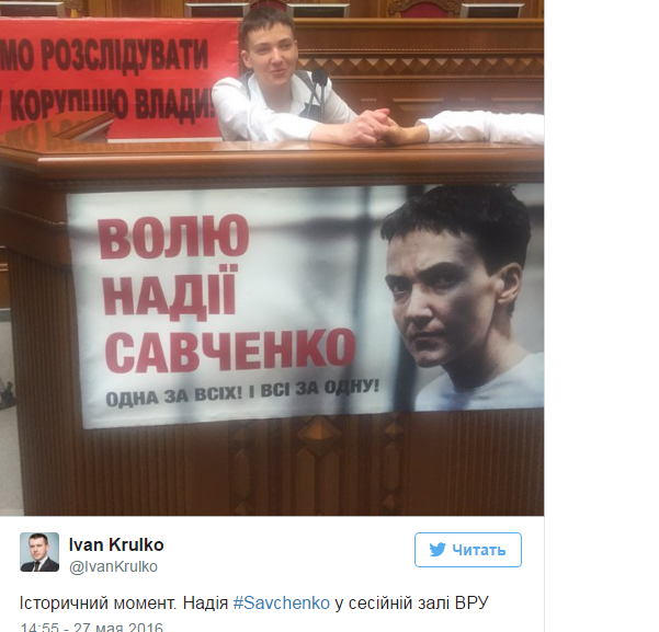 Вопреки обещаниям Савченко сорвать плакать "Волю Надежде Савченко", он пока еще висит на трибуне ВР.