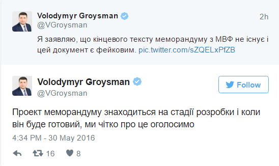 Сегодня, 30 мая, премьер-министр Украины Владимир Гройсман заявил об отсутствии в настоящее время конечного текста меморандума Украины с МВФ.