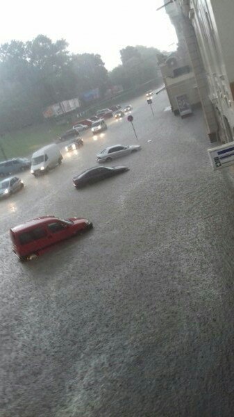 Автомобили даже не пытались двигаться, водители бросили свои транспортные средства прямо там, где их застал дождь, и покорно под навесами или же в магазинах ждали, когда все закончится.