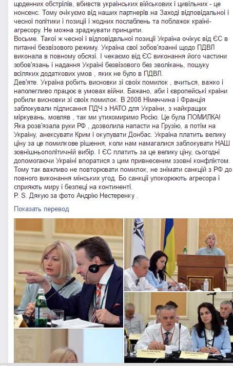 И восьмой пункт – западные партнеры должны сделать выводы из своих ошибок. После отказа в 2008 году Германии и Франции поддержать подписание ПДЧ с НАТО для Украины Киев заплатил большую цену аннексией Крыма и войной в Донбассе.