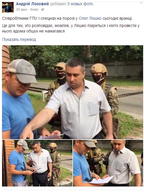 Напомни, сегодня в 07:00 силовики пришли в дом парламентария Олега Ляшко с обыском. По словам Лозового, они даже собирались выламывать двери. Позже следователь извинился перед Ляшко, заявив, что правоохранители ошиблись дверью.