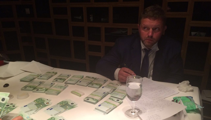 Правоохранительные органы опубликовали фотоснимки чиновника в момент задержания. На его ладонях осталась специальная флуоресцентная краска, свидетельствующая о том, что он прикасался к этим деньгам.