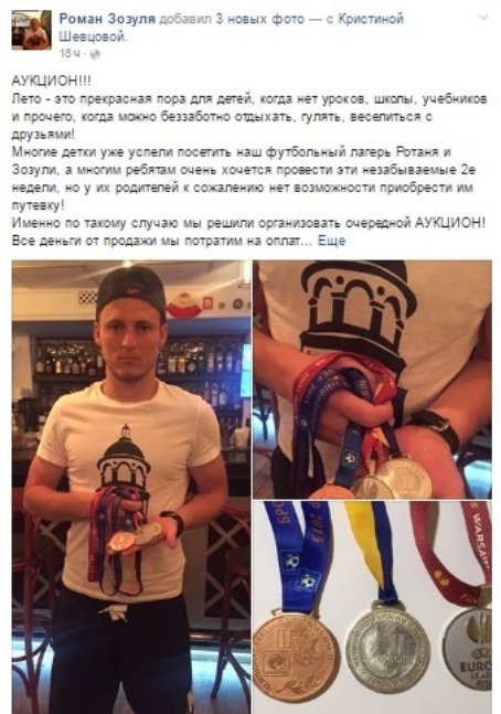 Аукцион продлится на станице футболиста в социальной сети до 16 июля 2016. Медали, по словам Зозули, ему передал один из футболистов, который предпочел не разглашать свое имя.