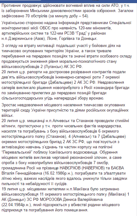 20 июля девять наемников “ДНР” инженерно-саперной роты из Дебальцево подали рапорты на досрочное расторжение контрактов.