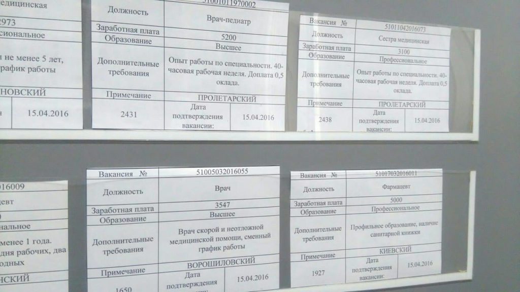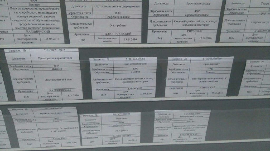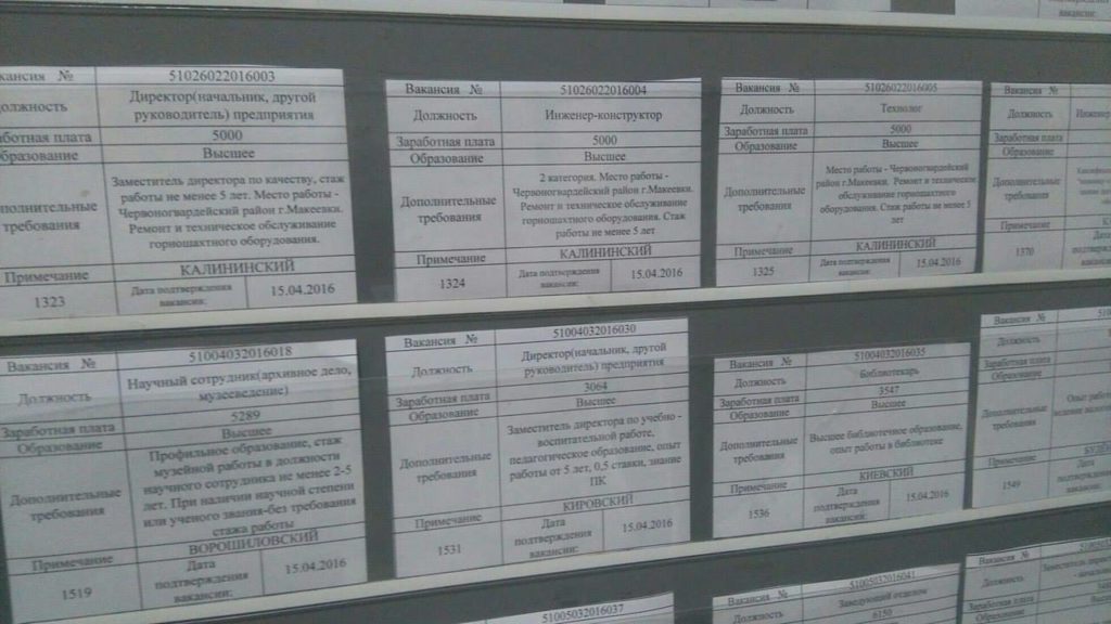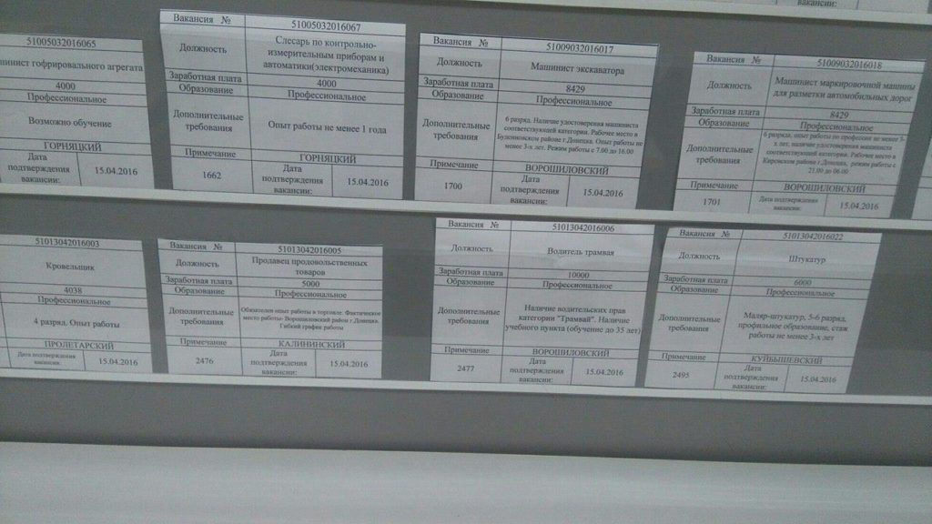 Фотографии из Донецкого центра занятости. Должности и зарплаты в российских рублях. Чтобы посчитать, сколько это в гривнах, просто разделите сумму на три, и вы поймете, за что воевали и терпели лишения жители Донецка.