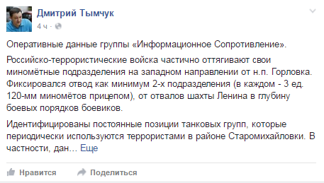 Об этом координатор группы "Информационное сопротивление" Дмитрий Тымчук сообщает в своем Facebook.
