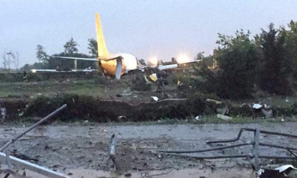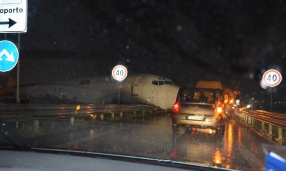 В аэропорту Италии самолет выехал за пределы взлетной полосы прямо на шоссе