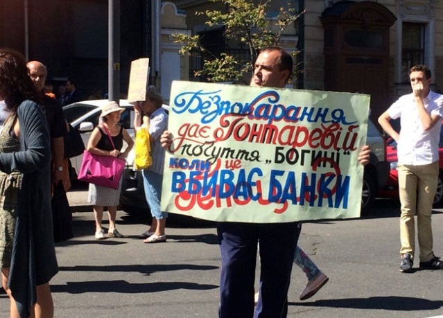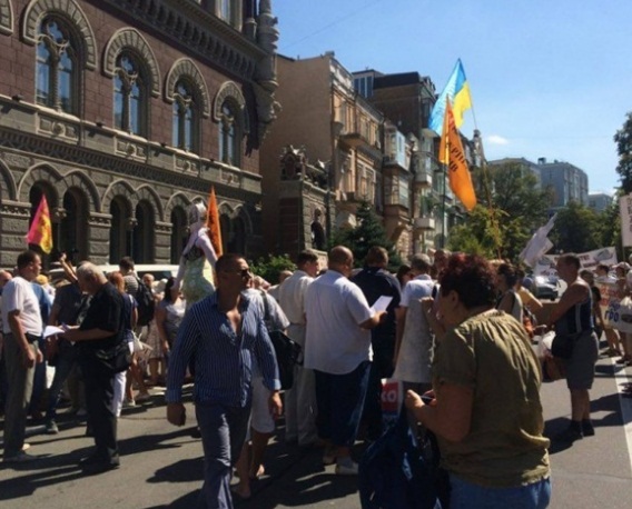 Протестующие вкладчики требуют увольнения и наказания главы НБУ Валерии Гонтаревой, обвиняя ее в банкротстве украинских банков, из-за чего люди не могут получить свои вклады. После митинга возле центрального управления Нацбанка Украины, в котором приняли участие свыше 200 обманутых вкладчиков, митингующие заблокировали Крещатик.