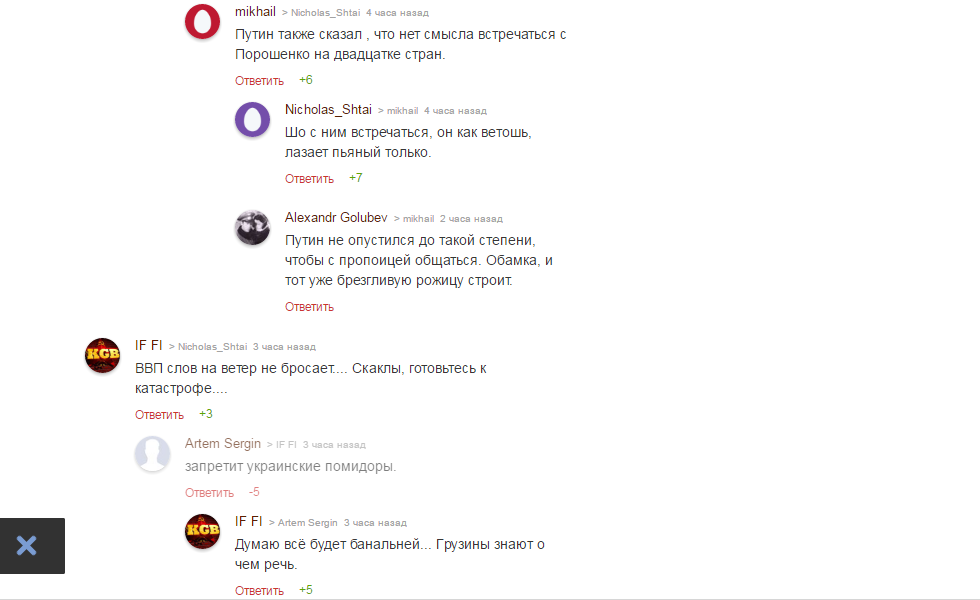 Глядя на сообщения россиян, оставленные в сети Интернет, становится понятным, почему Путин придумывает такие бредовые истории. Ведь только так он может казаться сильным и могущественным в глазах своих граждан. На большее российский президент, похоже, не способен.