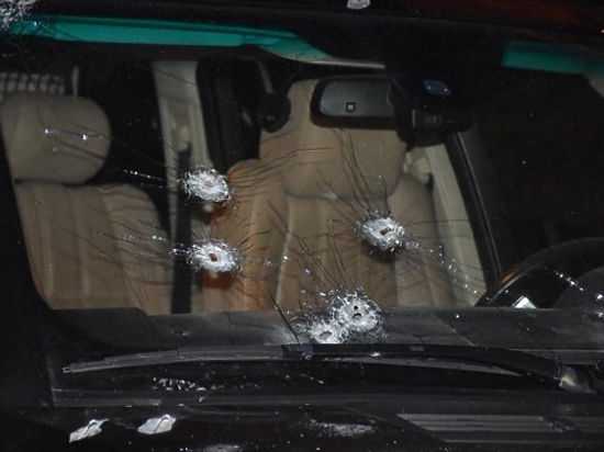 На фото с места происшествия видно, что в лобовое стекло вошли более 7 пуль, вся правая сторона, где сидел "авторитет", - в отверстиях от пуль.