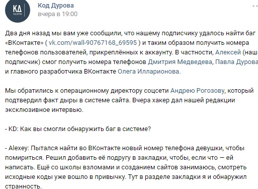 Затем получил номер Дмитрия Медведева: хакер узнал суперсекретную информацию из-за оплошности программистов "ВКонтакте"