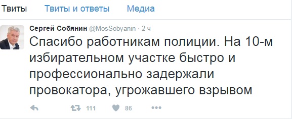 О задержании преступника стало известно из сообщения мэра Москва Сергея Собянина в Twittere. Градоначальник российской столицы поблагодарил полицию за профессиональные и быстрые действия.