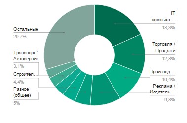 Ей удалось оттеснить традиционного лидера – сферу продаж и торговли – на почетное второе место (12,8%). Производство идет следом за торговлей н третьей позиции (10,4%).