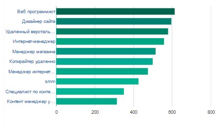 Достаточно неплохим спросом среди работодателей пользуются также интернет-менеджеры и специалисты по продажам в магазинах (557 и 515 вакансий). В большом почете и другие профессии, предполагающие работу с интернетом (копирайтеры, удаленные контент-менеджеры).