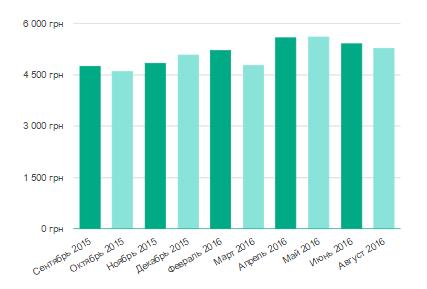 - в июле цифры начали немного возросли, до отметки в 4652 грн.;