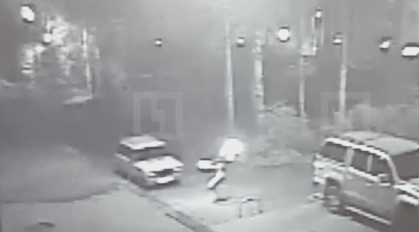 На записях с камер видно, как двое мужчин забрасывали здание подожженными бутылками. Также хорошо видно вспышки и начало воспламенения здания.