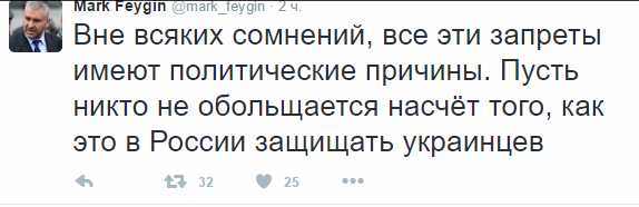 Фейгин ранее защищал в суде украинскую летчицу Надежду Савченко, плененную российскими военными.