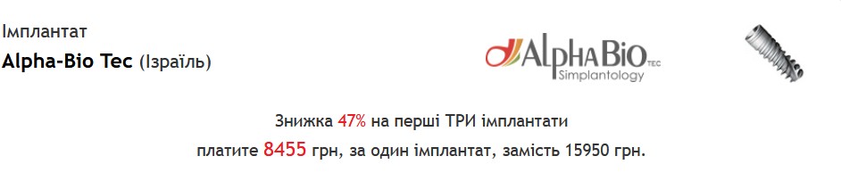 - -Ізраїльські імпланти – 9400-12000 грн;