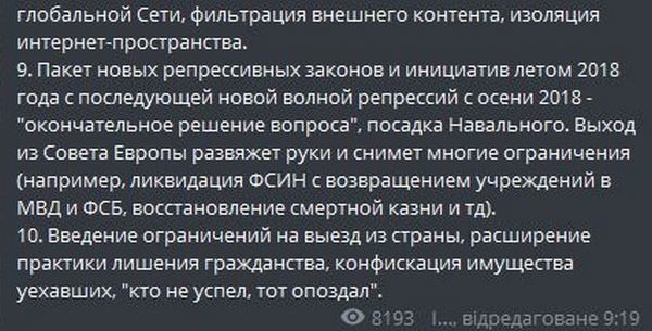 Помимо этого, скорее всего, Путин доведет до критической точки отношения с Западом. Россиянам грозит выход РФ из Совета Европы, отделение от международных организаций, в частности, ЕСПЧ, а также разрыв контактов с "недружественными странами". Более того, вполне возможно, что путинский режим введет более жесткие ограничения для поездок россиян за границу.