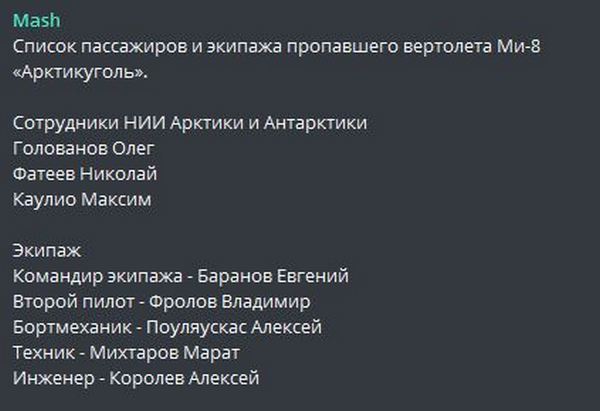 Погранслужба Норвегии уже выступила с официальным заявлением, в котором сообщила о гибели всех находившихся на борту вертолета. Это 5 членов экипажа и 3 сотрудников российской компании. Их имена уже известны.