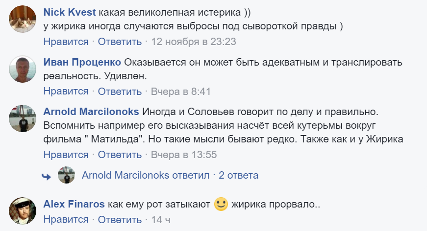 При этом пользователи соцсетей отмечают, что заявление Жириновского о кровавом советском режиме и упоминание Украины вышло на редкость адекватным и соответствующим действительности.