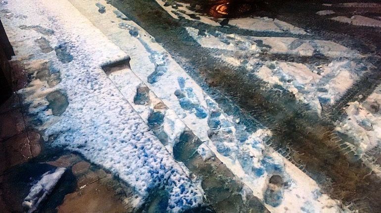 Местные жители из города Санкт-Петербурга с утра во вторник, 26 декабря, сильно перепугались, когда обнаружили на своих улицах осадки, окрашенные в холодные тона цветовой палитры.