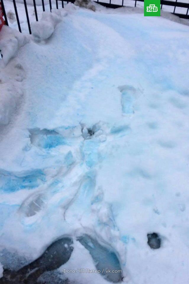 В Санкт-Петербурге (Российская Федерация) выпал снег, которого раньше никогда не видели. Он оказался с примесью синей краски.