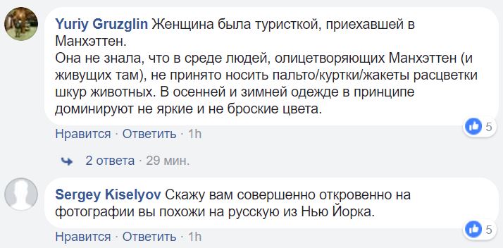 “Вы похожи на русскую из Нью-Йорка”, - отметил откровенно подписчик, имея ввиду, что такие “понты” в одежде присущи представителям именно “русского мира”.