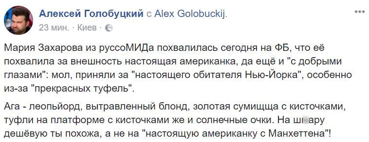 Более жестко по представительнице МИД РФ “прошелся” украинский политтехнолог Алексей Голобуцкий.