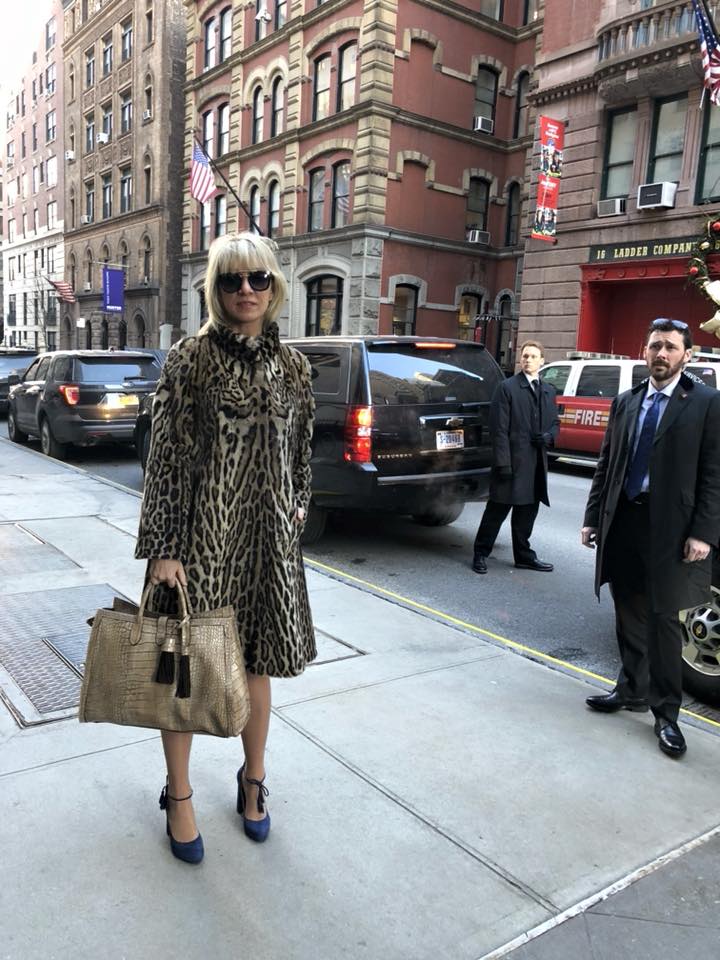 Захарова рассказала, что в Вашингтоне некая “почтенных лет ухоженная американка” с “добрыми глазами”, которые якобы редкость в США, была сражена ее нарядом и назвала “коренной обитательницей Манхэттена”. При этом представительница МИД была облачена в натуральную шубу с леопардовым узором, а также имела при себе сумку из крокодиловой кожи.