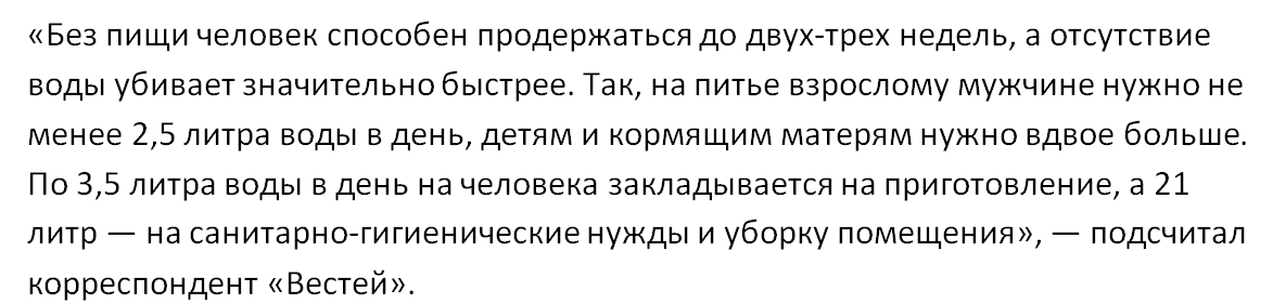 Журналист сообщил, что в подземные бункеры необходимо брать крупы и в особенности рис, срок хранения которого достигает восьми лет, овсяную крупу, консервы, оливковое масло и сухое молоко. Гречку, макароны, шоколад и сгущенку брать не рекомендуют, поскольку они долго не хранятся.