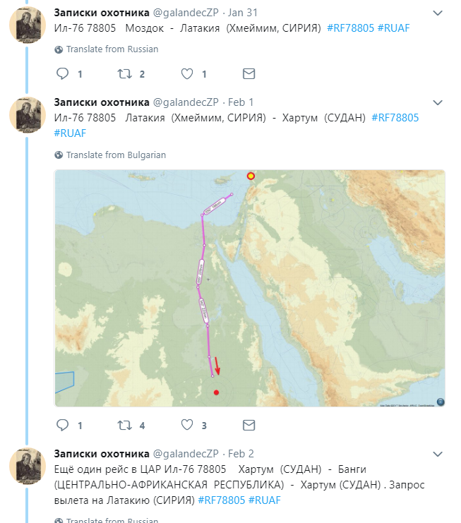 Россия перебрасывает военных в Африку через авиабазу в Сирии: Хмеймим позволяет российской транспортной авиации совершать рейсы в Африку, перебрасывая грузы и/или персонал в ЦАР через Судан.