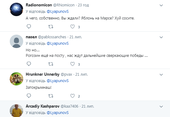 — Рогозин-на-орбите (@LyapunovS) 21 липня 2018 р.