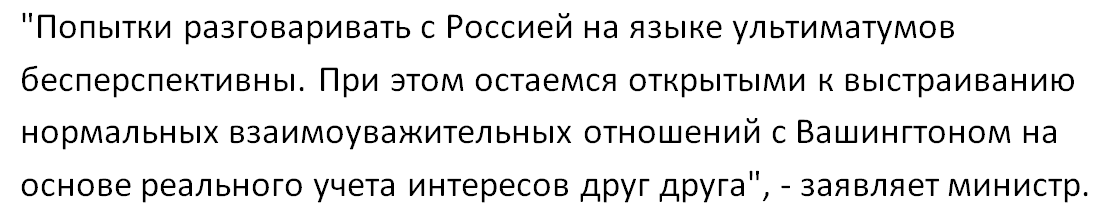 Российский чиновник настаивает, что попытки говорить с Москвой на языке ультиматумов не имеют перспективы, а лишь вызовут ответную враждебную реакцию со стороны России.
