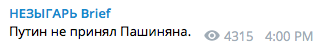 Внимание на демарш Путина обратил даже близкий к Кремлю telegram-канал "Незыгарь", передает "Диалог.UA".