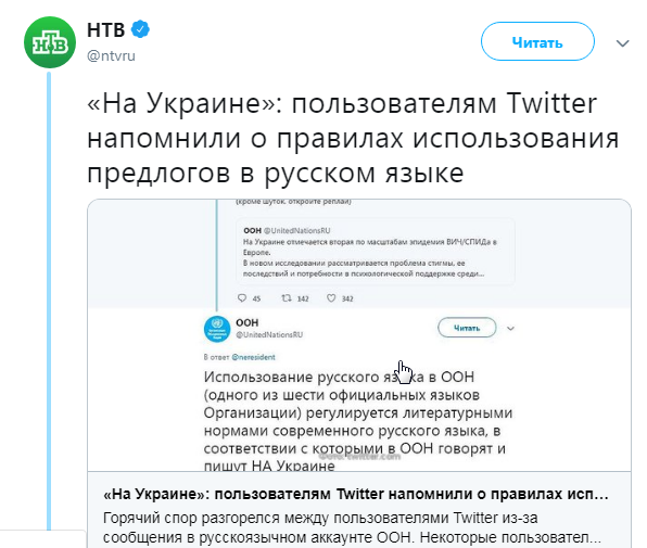 Она получила неожиданное продолжение в Instagram, где "НТВ" разместил публикацию о споре по этому поводу и удаленном в Тwitter посте, после чего примеру администраторов "Тви" последовали коллеги из "Инстаграма" и тоже удалили текст со словами "на Украине".