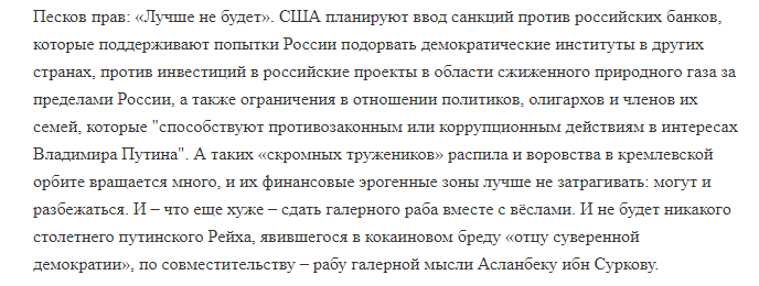 Оппозиционный российский журналист Саша Сотник опубликовал свой новый текст, посвященный новому витку санкционного давления США на российское руководство. Он уверен, что эти меры приближают катастрофу для путинского режима. Об этом сообщает "Диалог.UA".