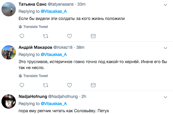 Другие шокированы тем, что Соловьев так легко без угрызений совести разжигает пламя войны.