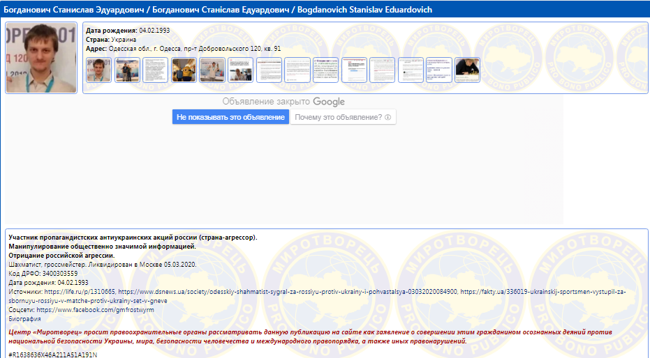 После того, как его симпатии к России стали достоянием общественности, Станислав оказался в базе данных сайта "Миротворец": его обвинили в отрицании российской агрессии и участии в пропагандисткой акции. Уже сегодня возле его имени появилась графа "Ликвидирован".